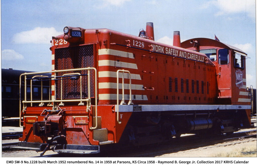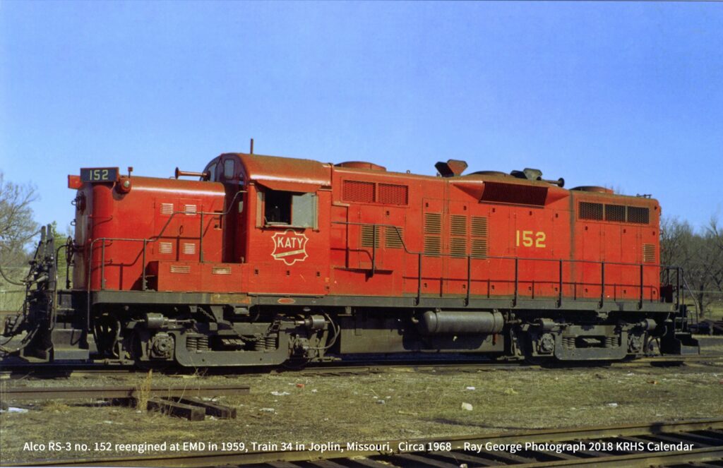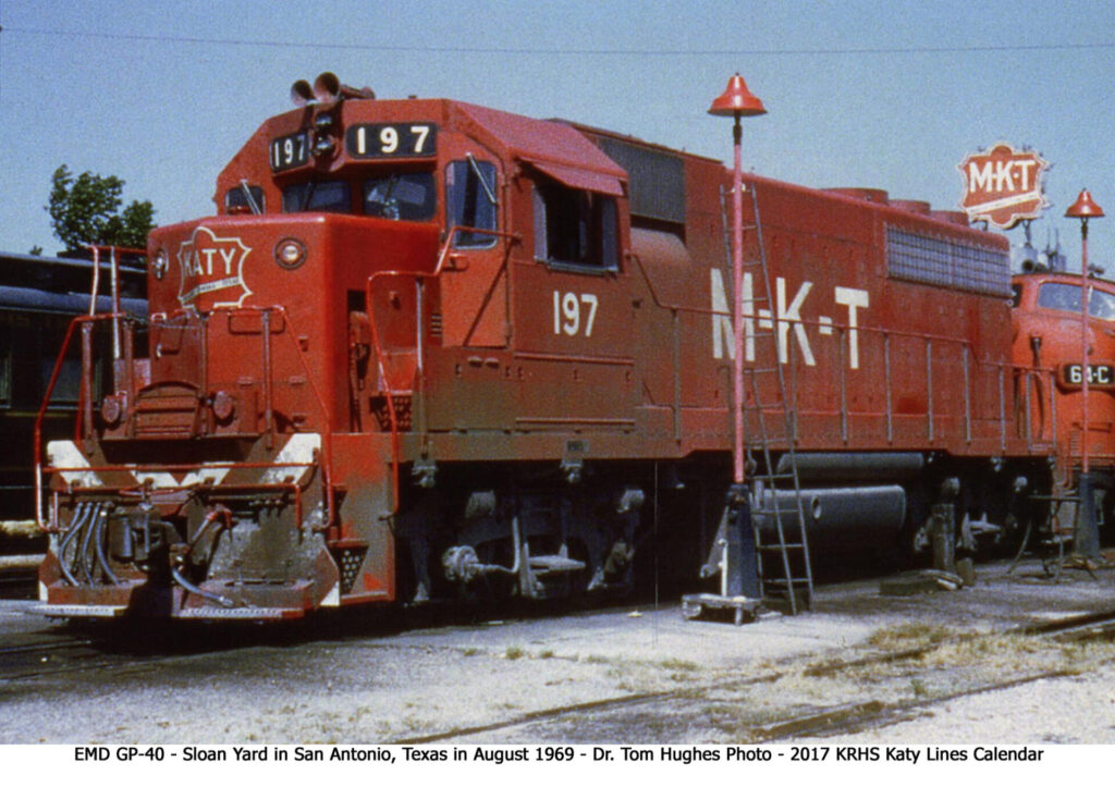 This page was compiled from the Diesels of the M-K-T series by John Merman in the KRHS Katy Flyer. The issues are September and December in 1994; March, June and December in 1995 and March 1996. A complete diesel roster is available from the KRHS, Diesel Locomotives of the M-K-T 1946 – 1983: A Roster. Most pictures were scanned from back issues of the K.R.H.S calendars. Most back issues can be ordered online using the Katy Flyer Magazine and Katy Lines Calendar buttons in the Publications drop down menu. Ordering by mail is also available by printing out the mail order form on the Publications menu