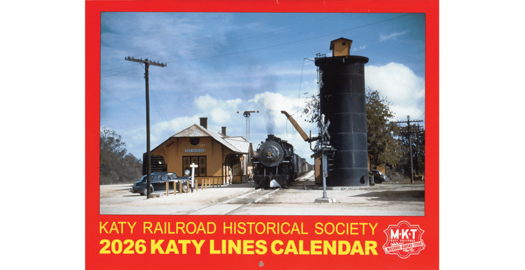 The Katy Railroad Historical Society – Katy Lines Calendar features historic photos from the past. Check examples below our 2026 calendar, with rarely seen historic photos in color of the historic Katy Railroad.
